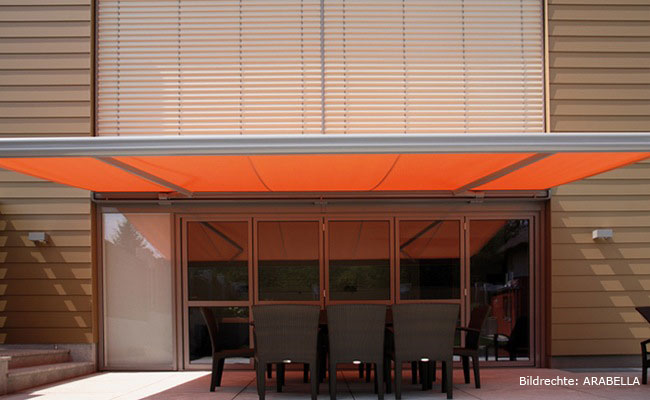 Fallarmmarkisen eigenen sich besonders gut zur Beschattung großer Fensterflächen. Selbst bei komplett aus-