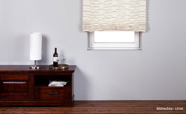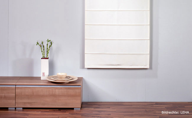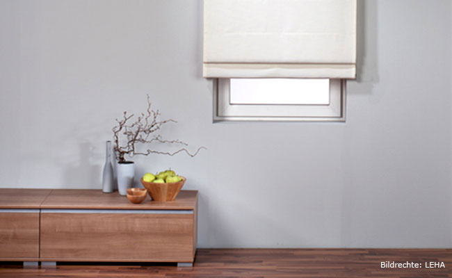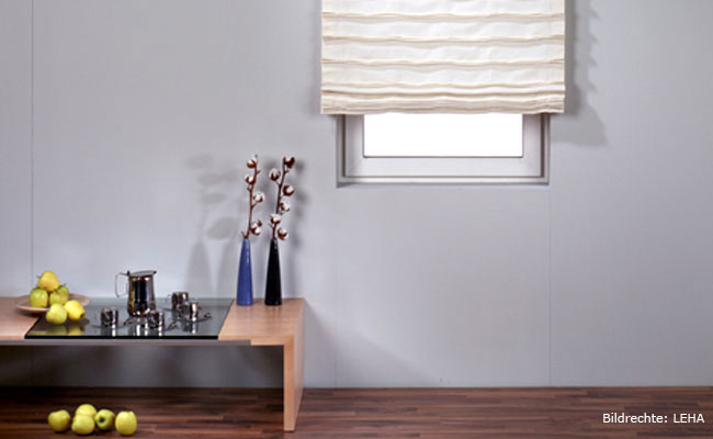 Raffrollos verbinden die dekorative, textile Wirkung des Vorhangs mit der Funktionalität des Rollos.